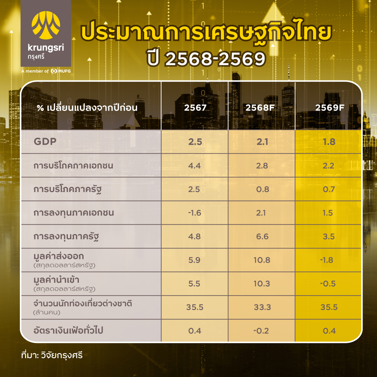 แนวโน้มเศรษฐกิจไทยปี 2569 : ปีแห่งการประคองตัวท่ามกลางกระแสความไม่แน่นอน วิจัยกรุงศรี คาดเศรษฐกิจไทยจะเติบโตเพียง 1.8%