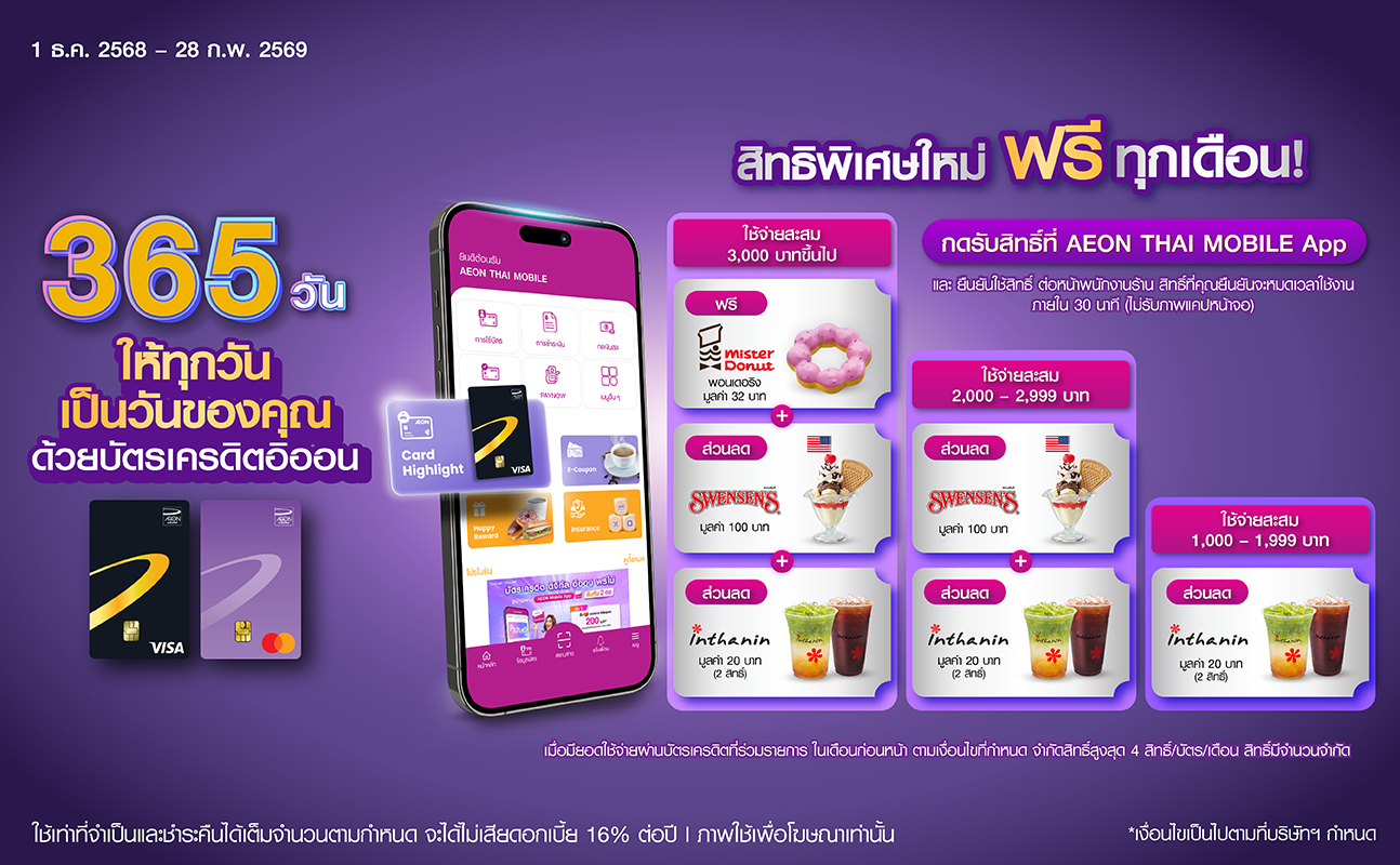 อิออน สานต่อแคมเปญ “365 วัน ให้ทุกวันเป็นวันของคุณ” จับมือแบรนด์ดัง เสิร์ฟความสุขต่อเนื่องเมื่อใช้จ่ายผ่านบัตรเครดิตอิออน