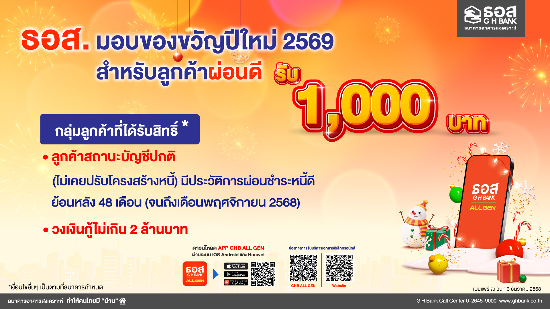 ลูกค้า เฮ! ธอส. มอบของขวัญปีใหม่ 2569 ผ่อนชำระดี รับเงิน 1,000 บาท