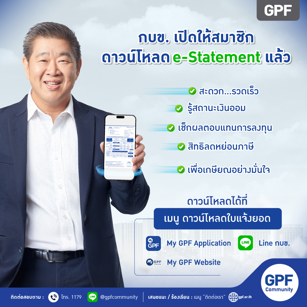 กบข. เปิดให้ดาวน์โหลด e-Statement แล้ว พร้อมชวนสมาชิกเช็กสถานะเงินออม วางแผนเพื่อวัยเกษียณ