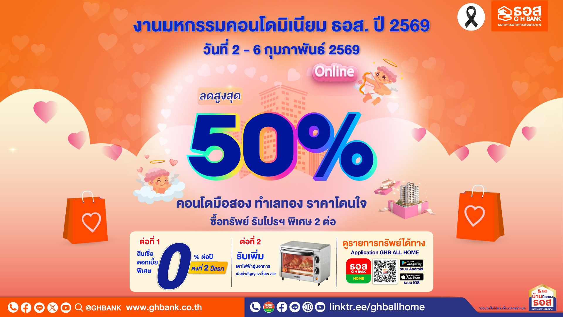 ธอส. จัดมหกรรมคอนโดมิเนียม ธอส. ปี 2569 (Online) ลดราคาสูงสุด 50% พร้อมโปรโมชันดอกเบี้ย 0% ต่อปี พบกันวันที่ 2 – 6 กุมภาพันธ์ 2569