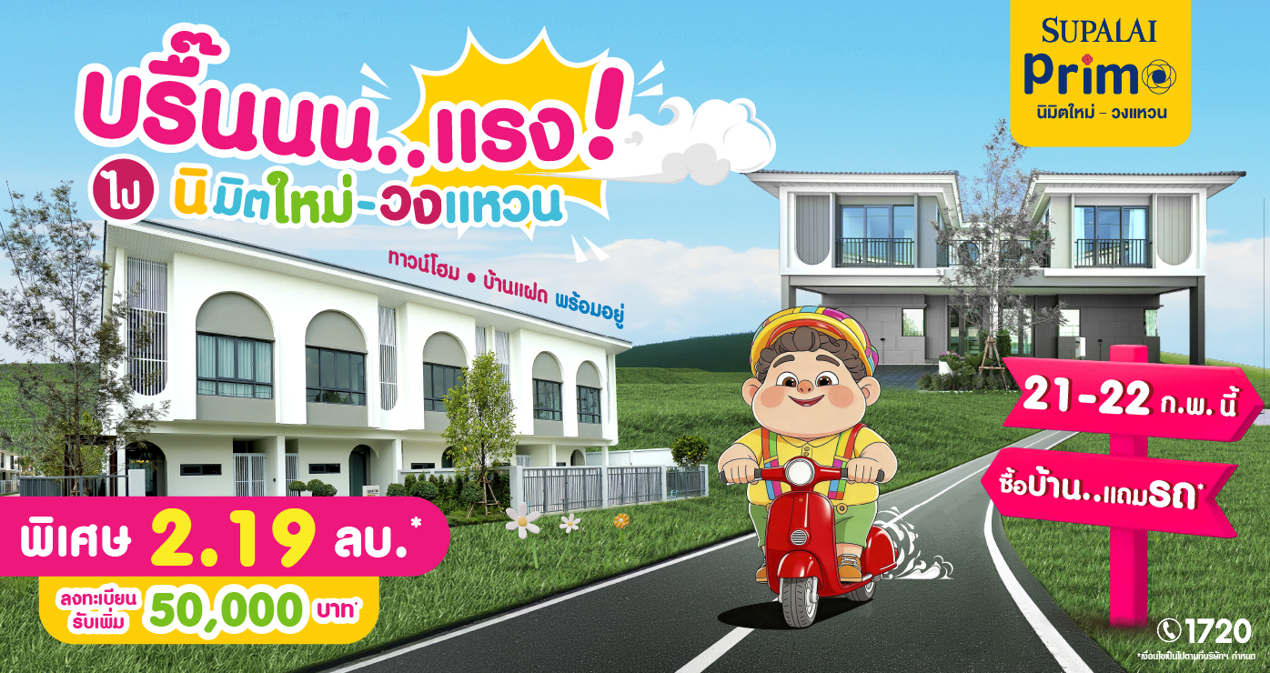 ดีลเดียวได้ครบ ทั้งบ้าน ทั้งรถ และส่วนลด ที่ศุภาลัย พรีโม่ นิมิตใหม่–วงแหวนบ้านแฝด–ทาวน์โฮม ราคาพิเศษ เริ่ม 2.19 ล้านบาท* พิเศษเฉพาะ 21–22 ก.พ. นี้*