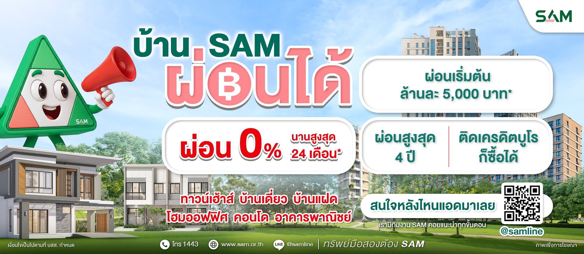 SAM เดินหน้าบทบาท “Social AMC” เปิดโอกาสคนไทยมีบ้าน ส่งแคมเปญใหญ่ “บ้าน SAM ผ่อนได้” รับเลยดอกเบี้ย 0% สูงสุด 24 เดือน