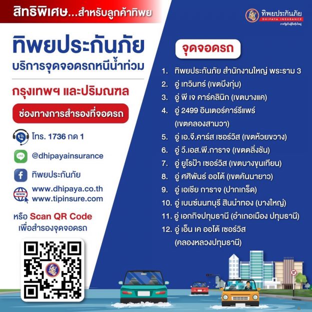 ทิพยประกันภัย ใจดี ให้จอดฟรี หนีน้ำท่วม