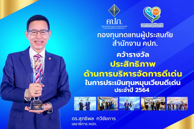 กองทุนทดแทนผู้ประสบภัย สำนักงาน คปภ. คว้ารางวัลประสิทธิภาพด้านการบริหารจัดการดีเด่นในการประเมินทุนหมุนเวียนดีเด่น ประจำปี 2564
