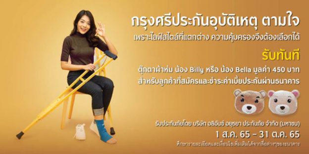 กรุงศรีประกันอุบัติเหตุ ตามใจ สมัครและชำระค่าเบี้ยประกันปุ๊บ รับปั๊บ ตุ๊กตาผ้าห่มน้อง Billy หรือ น้อง Bella ฟรี..