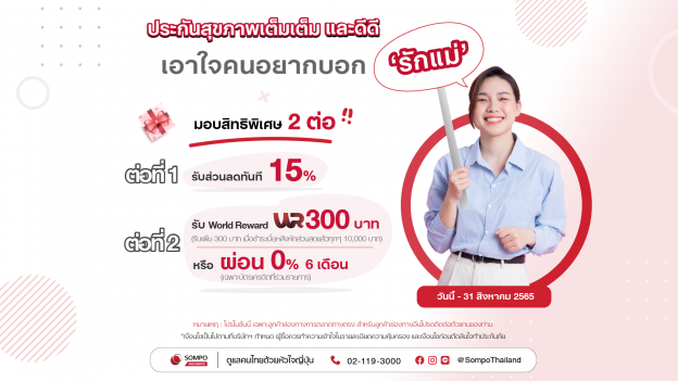 เดือนสิงหาคม บอกรักแม่ผ่านประกันสุขภาพ พร้อมรับสิทธิประโยชน์สุดคุ้มจากซมโปะ ประกันภัย