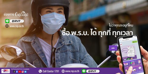 ซื้อประกัน พ.ร.บ. มอเตอร์ไซด์ออนไลน์ได้แล้ว 24 ชั่วโมง ผ่านไลน์ @iRVP และ เว็บไซค์ www.rvp.co.th