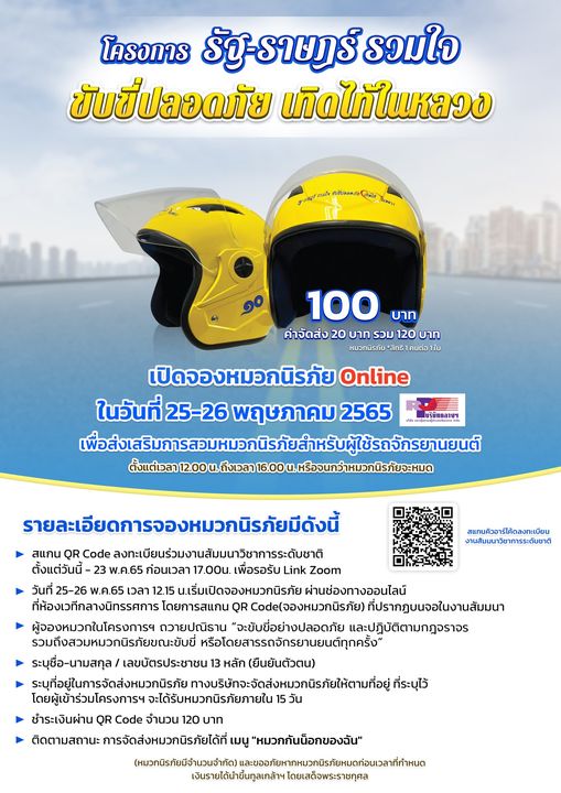 เปิดจอง..”หมวกนิรภัยออนไลน์” โครงการรัฐราษฎร์ รวมใจ ขับขี่ปลอดภัย เทิดไท้ในหลวง