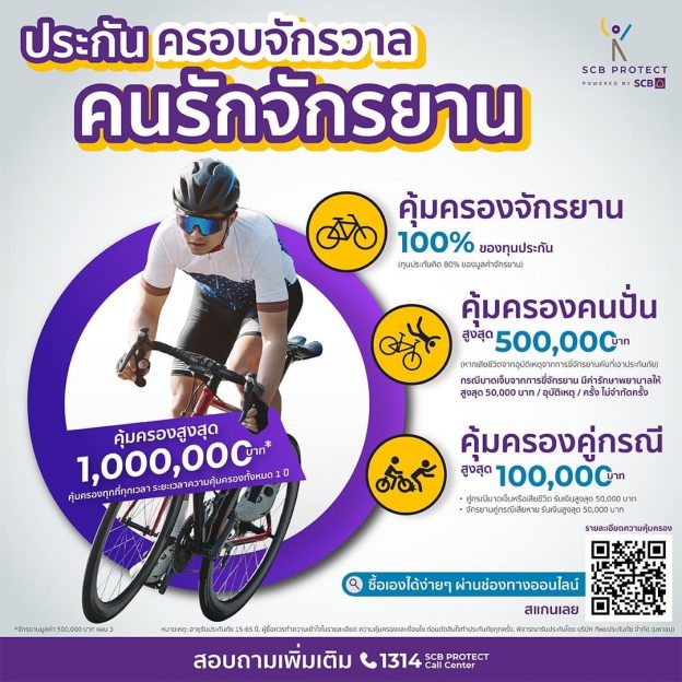 SCB Protect จับเทรนด์คนรักสุขภาพสายนักปั่นจักรยาน ส่งแผนประกันครอบจักรวาลคนรักจักรยาน คุ้มครองจักรยาน นักปั่น และคู่กรณี สูงสุด 1 ล้านบาท ด้วยเบี้ยเริ่มต้น 1,000 บาทต่อปี
