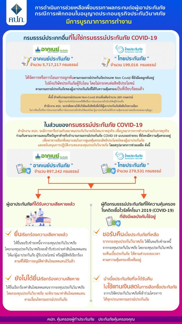 การดำเนินการช่วยเหลือเพื่อบรรเทาผลกระทบต่อผู้เอาประกันภัย กรณีการเพิกถอนใบอนุญาตประกอบธุรกิจประกันวินาศภัย บริษัท อาคเนย์ประกันภัย จำกัด (มหาชน) และ บริษัท ไทยประกันภัย จำกัด (มหาชน)