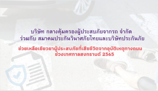 “ช่วงเทศกาลสงกรานต์ 2565” บริษัท กลางคุ้มครองผู้ประสบภัยจากรถ ร่วมกับสมาคมประกันวินาศภัยไทยและบริษัทประกันภัย ช่วยเหลือเยียวยาผู้ประสบภัยที่เสียชีวิตจากอุบัติเหตุ