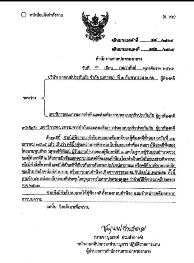 เปิดมุมมองผลทางกฎหมาย กรณีบริษัทประกันภัย ถอนฟ้องเลขาธิการ คปภ.