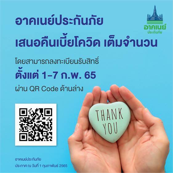อาคเนย์ประกันภัยและไทยประกันภัย สรุปยอดคนสนใจขอคืนเบี้ยโควิดกว่า 889,000 ราย เริ่มโอนเงินคืน 9 ก.พ. นี้