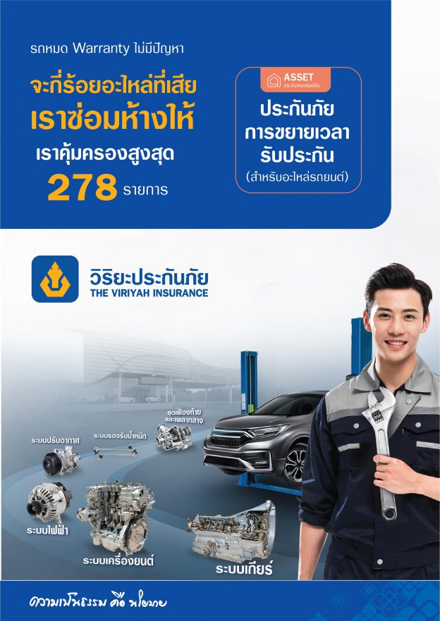 วิริยะประกันภัย รุก “ประกันสุขภาพรถ” รองรับรถหมด Warranty “อะไหล่เสีย เคลียร์ให้ ซ่อมครบ จบที่ศูนย์” เบี้ยเริ่มต้น 2,555 บาท