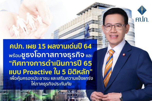 คปภ. เผย 15 ผลงานเด่นปี 64 พร้อมชูธงโอกาสทางธุรกิจและ “ทิศทางการดำเนินการปี 65 แบบ Proactive ใน 5 มิติหลัก” เพื่อคุ้มครองประชาชนและเสริมความแข็งแกร่งให้ภาคธุรกิจประกันภัย