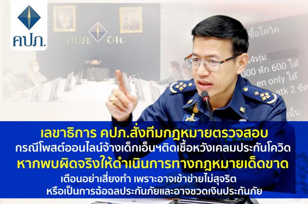 เลขาธิการ คปภ. จับโป๊ะ!! กรณีจ้างเด็กเอ็นติดเชื้อหวังเคลมประกันโควิด เตือน…อย่าทำอาจชวดเงินประกันภัย