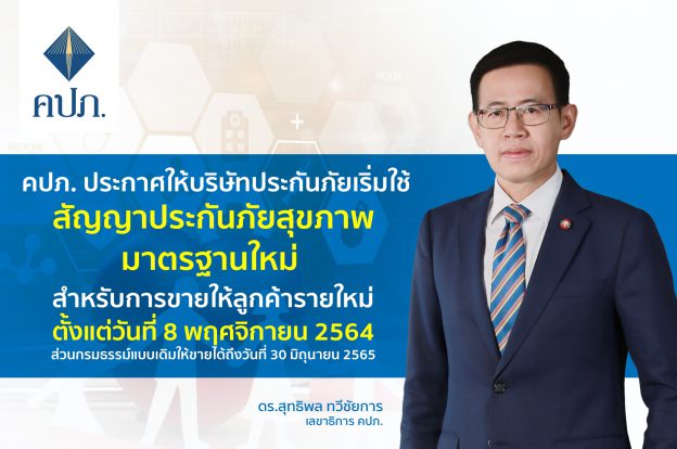 คปภ. ไฟเขียวให้บริษัทประกันภัยเริ่มใช้สัญญาประกันภัยสุขภาพมาตรฐานใหม่ เริ่ม 8 พ.ย.64 เป็นต้นไป… ส่วนสัญญาแบบเดิมขายได้ถึงวันที่ 30 มิ.ย.65 เท่านั้น