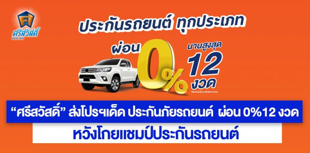 ‘ศรีสวัสดิ์’ ส่งโปรฯเด็ด ประกันภัยรถยนต์ ผ่อน 0%12 งวด หวังโกยแชมป์ประกันรถยนต์