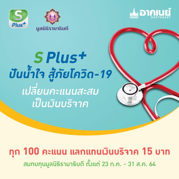 อาคเนย์ ส่ง “S Plus+ ปันน้ำใจ สู้ภัยโควิด” เปลี่ยนพ้อยต์เป็นเงินบริจาค สมทบทุนมูลนิธิรามาธิบดีฯ