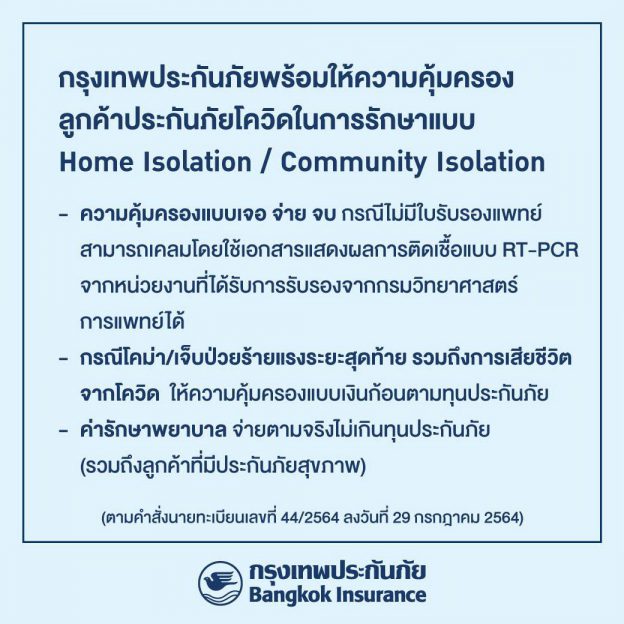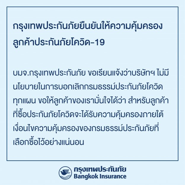 กรุงเทพประกันภัย ยืนยันให้ความคุ้มครองลูกค้าประกันภัยโควิด-19