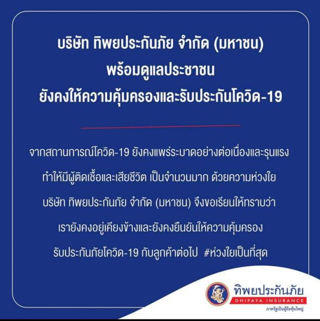 ทิพยประกันภัย ห่วงใยคนไทยพร้อมให้ความคุ้มครองครอบคลุมการรักษาแบบ Home Isolation และ Community Isolation