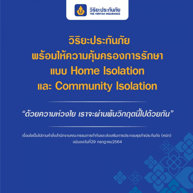 วิริยะประกันภัยยืนยันให้ความคุ้มครอง กรณีรักษาแบบ Home Isolation หรือแบบ Community Isolation