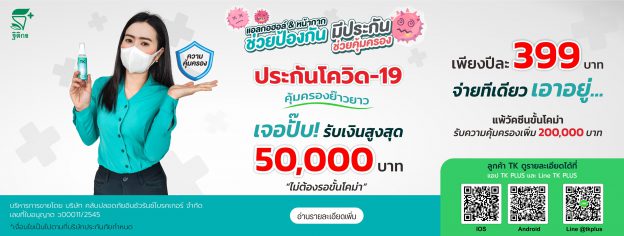 TK นำเสนอประกัน “โควิด-19 ซูเปอร์ ชีลด์” เจอ-จ่าย-จบ พร้อมคุ้มครองเพิ่ม 200,000 บาทกรณีโคม่าจากแพ้วัคซีนโควิด