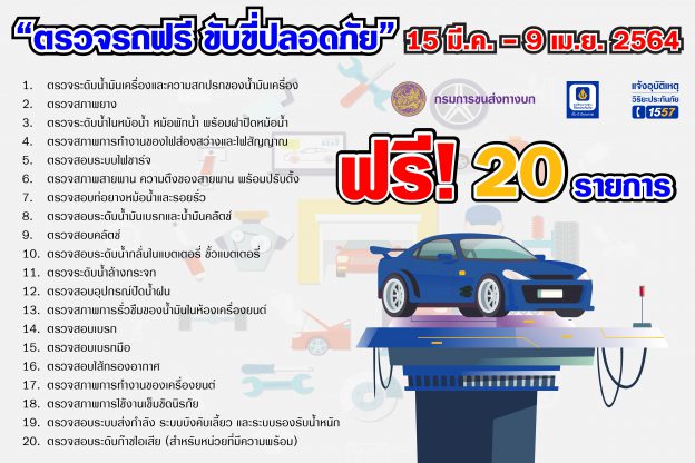 “ตรวจรถฟรี ขับขี่ปลอดภัย” รถพร้อม คนพร้อม รถมีประกันภัย มีความคุ้มครอง”