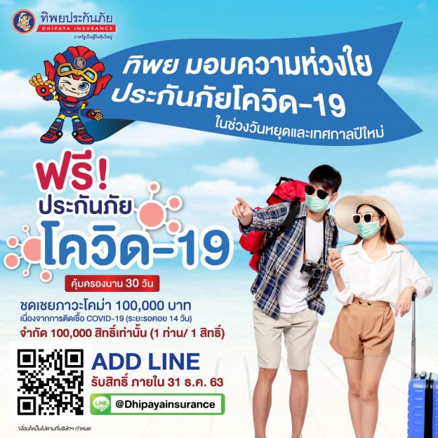 ฟรี “ทิพย มอบความห่วงใย ประกันภัยโควิด-19” พร้อมดูแลประชาชน หนุนการท่องเที่ยว 100,000 ราย