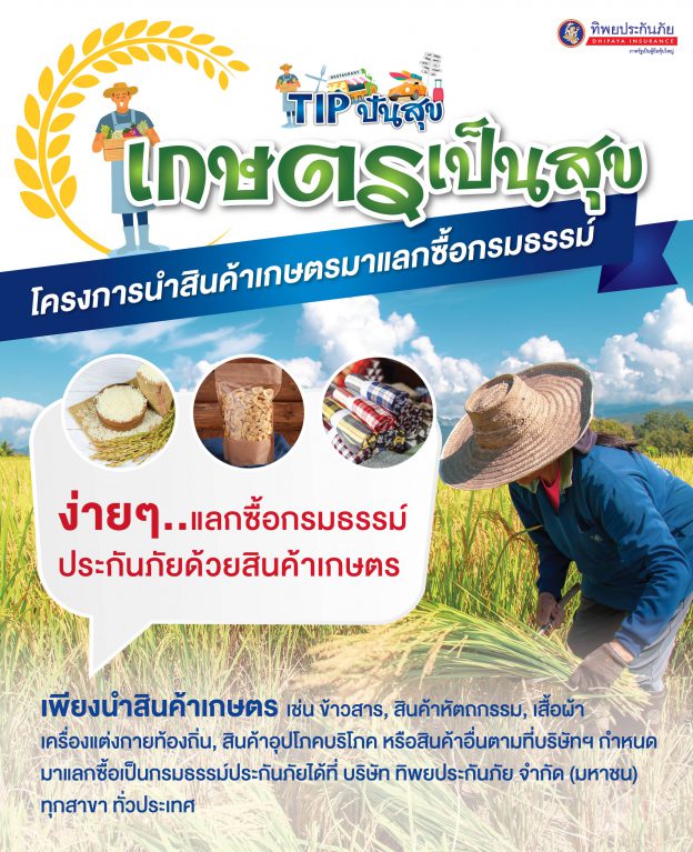 ทิพยฯ เปิดโครงการ “เกษตรเป็นสุข” ช่วยเหลือเกษตรกร เพิ่มช่องทางกระจายผลผลิต – เข้าถึงระบบประกันภัย “เพิ่มรายได้ ลดค่าใช้จ่าย สลายความเสี่ยง”