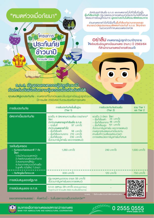 ธ.ก.ส. เปิดรับทำประกันภัยข้าวนาปี ปีการผลิต 2563 เป้าหมาย 45.7 ล้านไร่