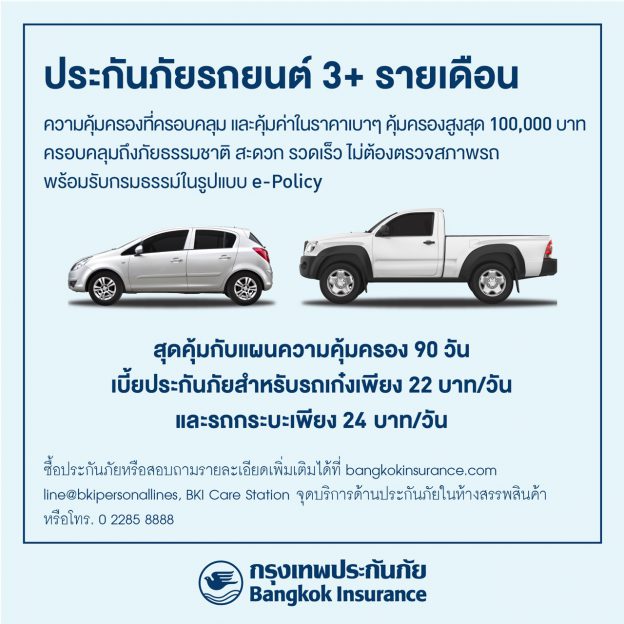 BKI ออกแผนประกันภัยรถยนต์ 3+ รายเดือน คุ้มครองคุ้มค่า ราคาโดนใจ
