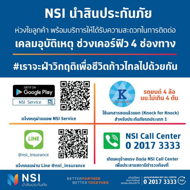 NSI นำสินประกันภัย พร้อมดูแลลูกค้าเปิด 4 ช่องทาง… แจ้งเคลมอุบัติเหตุช่วงเคอร์ฟิว !!