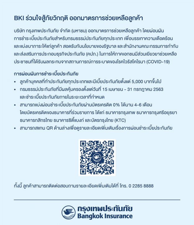 BKI ร่วมใจสู้ภัยวิกฤติ ออกมาตรการช่วยเหลือลูกค้า