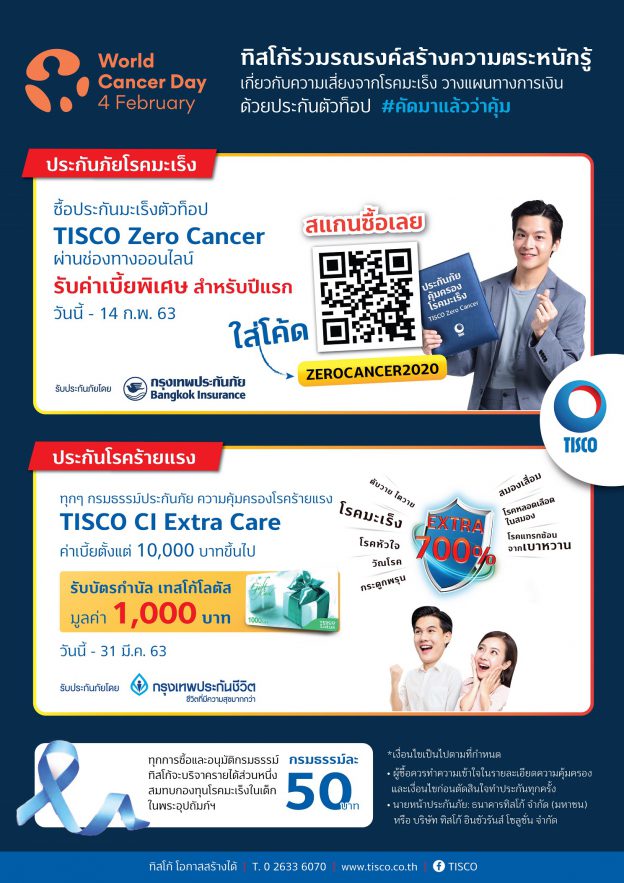 ทิสโก้จัดโปรโมชั่น ซื้อประกันมะเร็งตัวท็อปผ่านออนไลน์ ได้รับค่าเบี้ยราคาพิเศษ!!