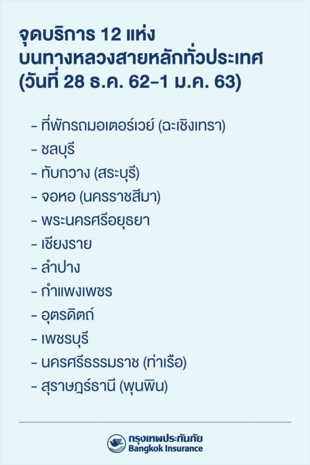 กรุงเทพประกันภัย… ตั้งจุดบริการประชาชนเทศกาลต้อนรับปีใหม่ 2563