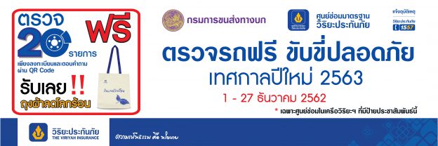วิริยะประกันภัย ร่วมกับ กรมการขนส่งทางบก รณรงค์เดินทางปลอดภัย ให้บริการตรวจรถฟรี ในช่วงเทศกาลปีใหม่