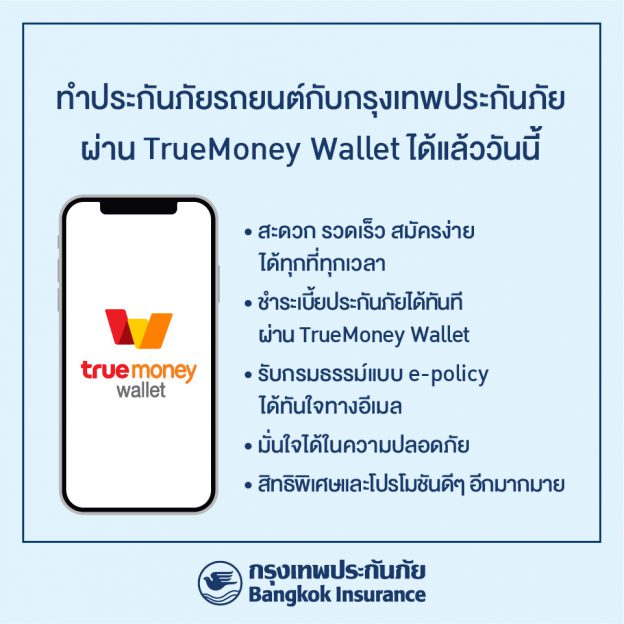 BKI เพิ่มช่องทางทำประกันภัยรถยนต์ … ผ่าน True Money Wallet !!