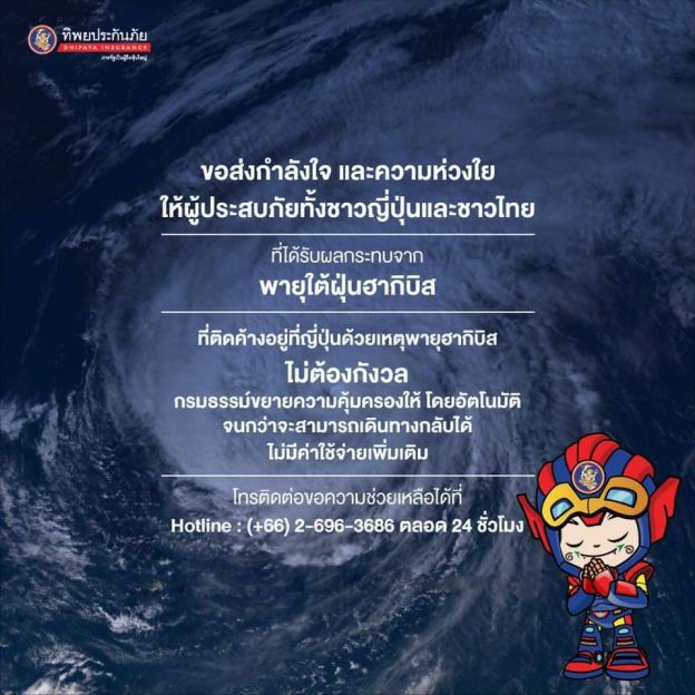 ทิพยประกันภัย ขอส่งกำลังใจและความห่วงใยให้ผู้ได้รับผลกระทบจาก “พายุใต้ฝุ่นฮากิบิส” ประเทศญี่ปุ่น