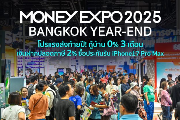 MONEY EXPO 2025 BANGKOK YEAR-END อัดโปรแรงส่งท้ายปี! กู้บ้าน 0% 3 เดือน เงินฝากปลอดภาษี 2% ซื้อประกันรับ iPhone17 Pro Max เริ่ม 20-23 พฤศจิกายน 2568 ฮอลล์ 5 ชั้น LG ศูนย์การประชุมแห่งชาติสิริกิติ์