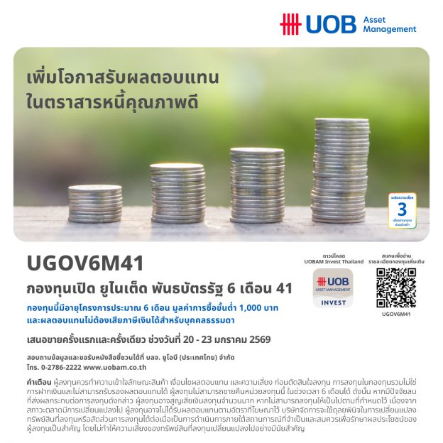 บลจ.ยูโอบี นำเสนอโอกาสลงทุนในพันธบัตรภาครัฐ กองทุนเปิด ยูไนเต็ด พันธบัตรรัฐ 6 เดือน 41 (UGOV6M41)