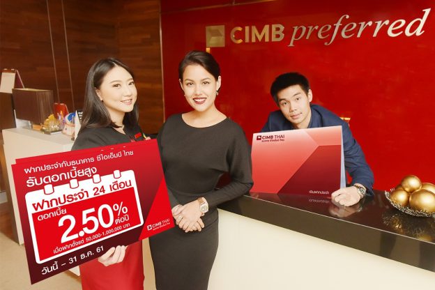 เงินฝาก CIMB Thai 24 เดือน ดอกเบี้ย 2.5% ต่อปี สูงที่สุดในตลาด !!