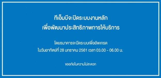 ทีเอ็มบีแจ้งปิดระบบงานหลักเพื่อพัฒนาประสิทธิภาพการให้บริการ ##