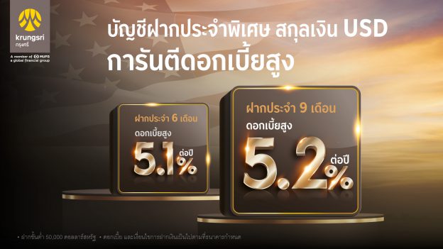 กรุงศรีออกโปร “เงินฝากประจำพิเศษ สกุลเงิน USD” ดอกเบี้ยสูงสุด 5.2% ต่อปี