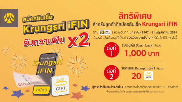 สินเชื่อ Krungsri iFIN รับความฟินคูณสอง เพียงสมัครผ่าน KMA krungsri app