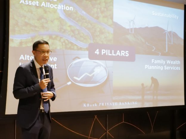 KBank Private Banking เปิดทริกปั้นพอร์ลงทุนรับปีมังกร แนะเงินลงทุน 50-70% ลงทุนในกองทุนผสมแบบ Risk-based asset allocation 30-50% กระจายลงทุนในตราสารหนี้คุณภาพดีทั้งพันธบัตรและหุ้นกู้ ด้านตลาดหุ้นเน้นกองทุนที่บริหารเชิงรุกในหุ้นเติบโตทั่วโลกและหุ้นเอเชียที่ราคาถูกกดดันมามากทั้งในตลาดหุ้นไทย-จีน-อินเดีย-เวียดนาม