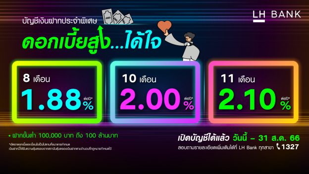 LH Bank ออกแคมเปญเงินฝากประจำพิเศษ ชูดอกเบี้ย 2.10% สูงได้ใจ