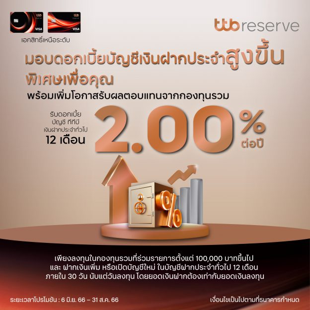 ทีเอ็มบีธนชาต จัดให้..ลูกค้ากองทุนรวม รับดอกเบี้ยพิเศษบัญชีฝากประจำ 12 เดือนสูงถึง 2.00 % ต่อปี