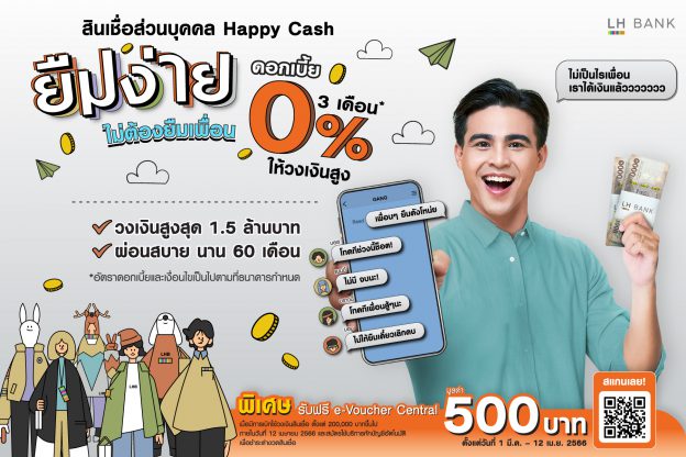 LH Bank ออกแคมเปญสินเชื่อส่วนบุคคล Happy Cash ชูดอกเบี้ย 0% นาน 3 เดือน ไม่ต้องค้ำประกัน